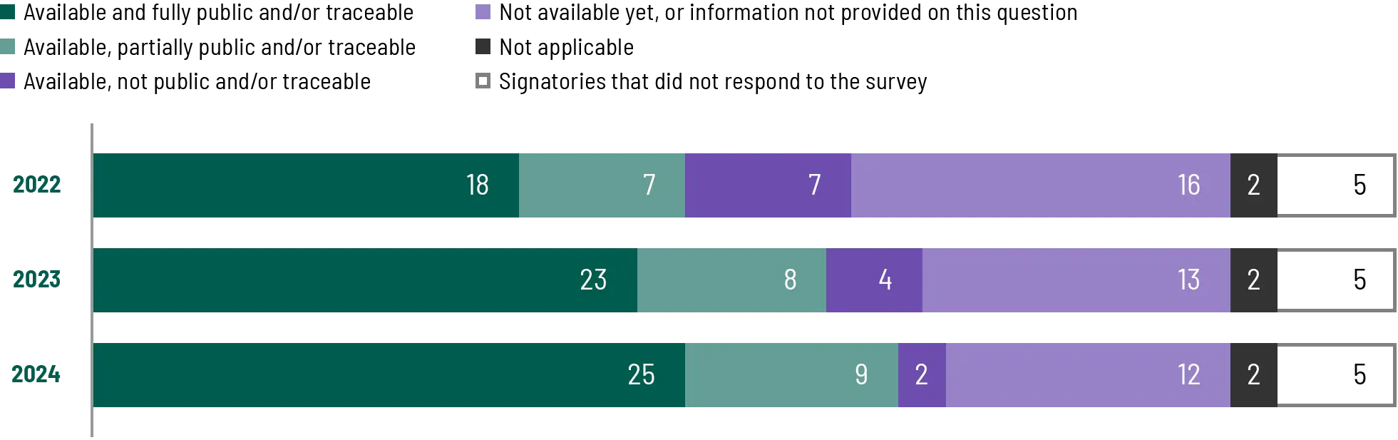 - Public availability and traceability examined whether answers given to the different questions could be verified through public or non-public documentation supplied by the signatory.