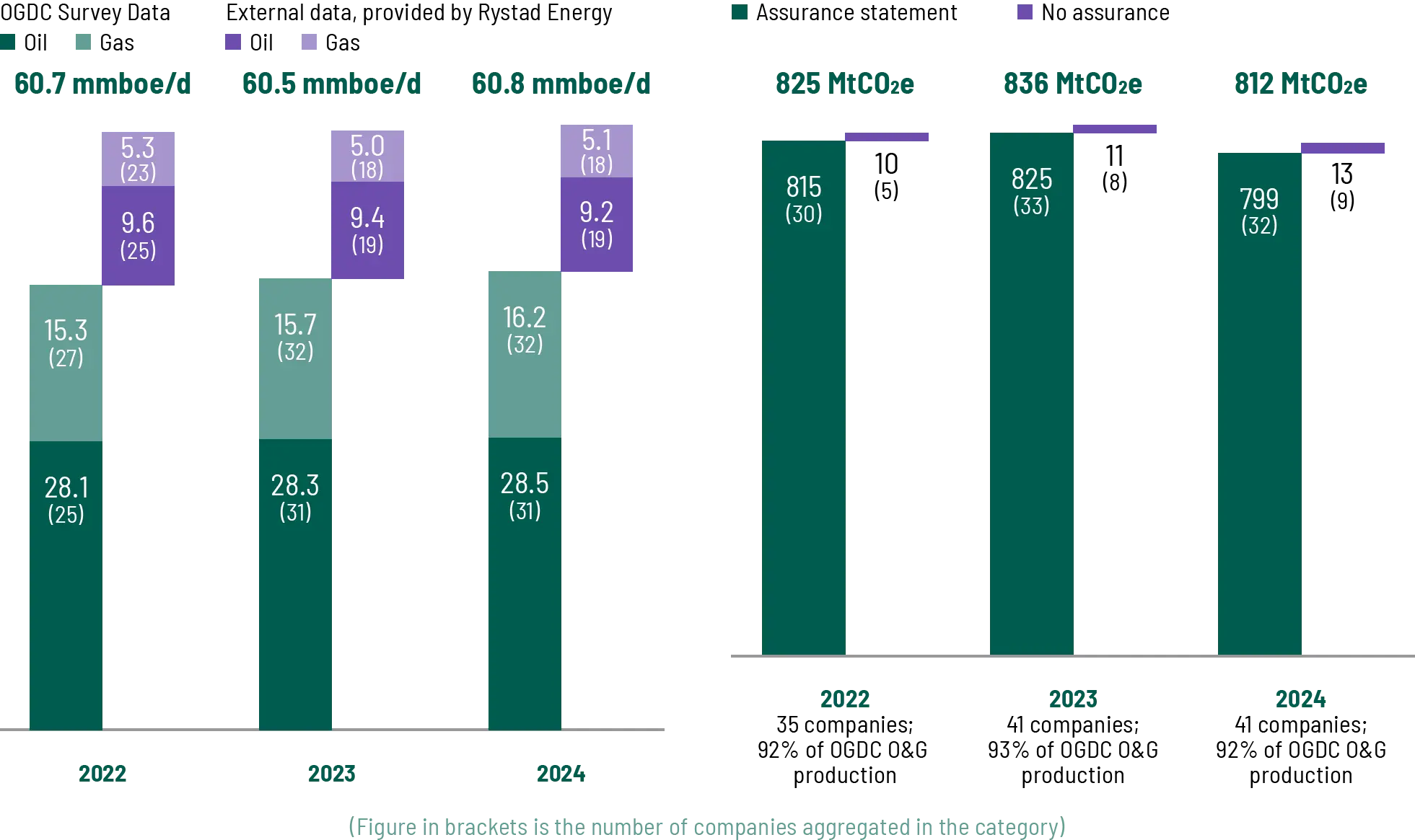 4 Total OGDC production was estimated using self reported production numbers and third-party estimations (Rystad Energy) where gaps exist. Not verified by DNV.